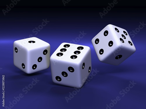 Three falling dice, 3-D illustration