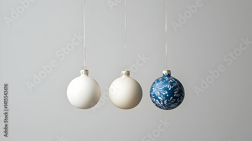 Three Hanging Christmas Ornaments, White, Cream, Blue