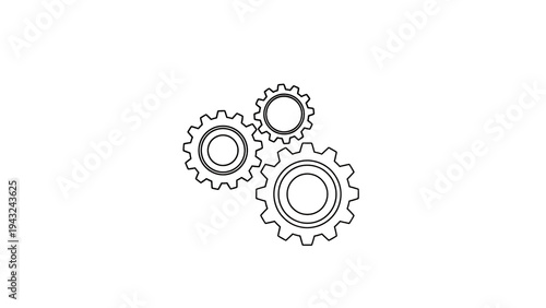 Three interlocking white gears on a black background with white outlines Keywords: gears