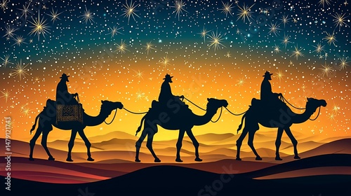 Three kings journey under a starry night