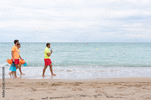 Three Lifeguards on a empty the beach