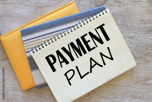 three notepads on the work table. text on the page payment plan