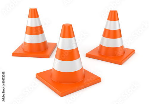 Three orange road cones