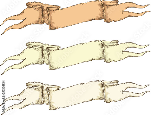 Three Retro Beige Blank Heraldic Ribbons