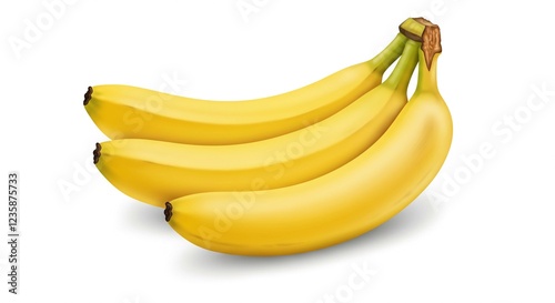 Three Ripe Yellow Bananas Bunch Isolated on White Background Healthy Food Tropical Fruit