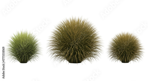 Three Round, Spiky Grass Tufts Isolated clump spherical
