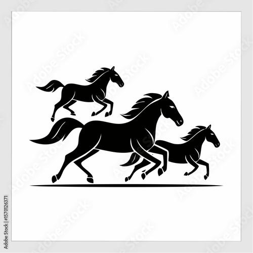 Three Running Horses Image vector. Black and white Running Horses Image vector on white background.