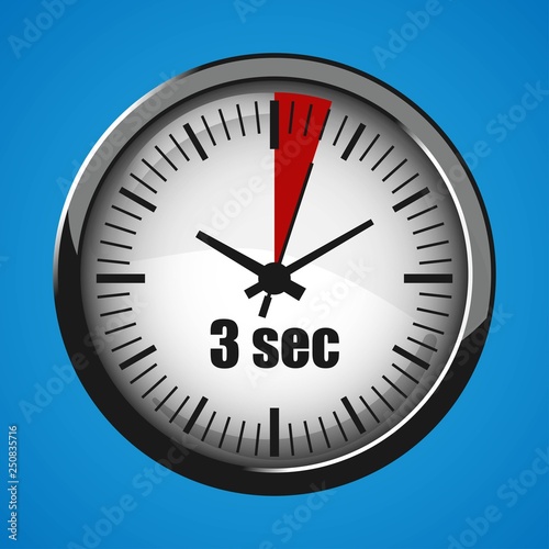Three Seconds Clock on blue background. Clock 3d icon. Stopwatch icon.