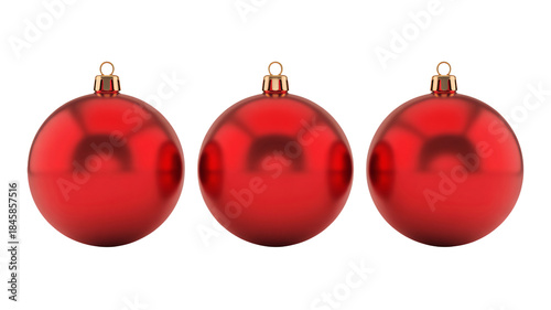 Three shiny metallic red Christmas ornaments with gold caps for holiday design