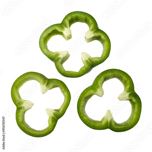 Three slices of green bell pepper isolated on a transparent background bell pepper slices