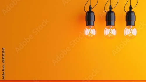 Three Vintage Light Bulbs Hanging Against a Bright Orange Background With Copy Space for Design and Text Use