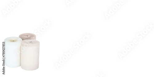 Three white candles on white background