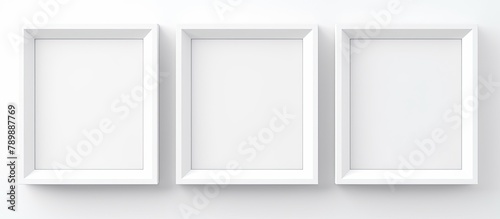 Three white frames on wall