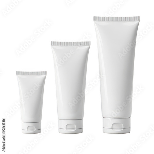 Three white plastic tubes of varying sizes on a plain white background. isolated on transparent background