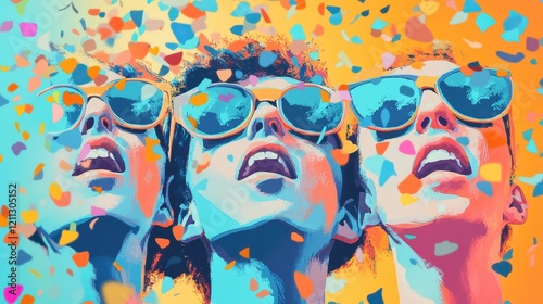 Three Women Joyfully Celebrate Amidst Confetti