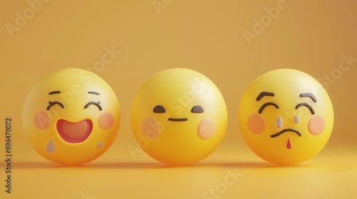 Three yellow emoticon faces expressing happy, neutral, and sad emotions on a bright orange background.