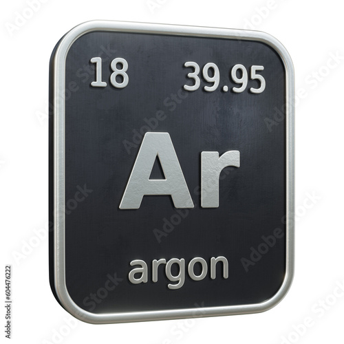 Three-dimensional icon of the chemical element of Argon isolated on transparent background. 3D rendering
