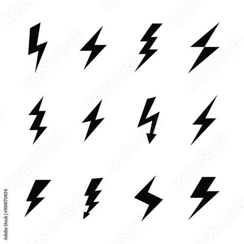 Thunderbolt, flash, lighting bolt and electricity icon set. Electrical power symbol