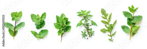 Thyme Leaves. Fresh Mint and Melissa Closeup Collection for Herbal Therapy