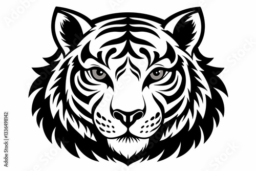 tiger head line art silhouette vector illustration