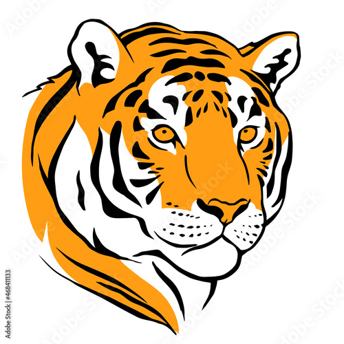 Tiger head on a white background. Predatory striped cat beast. Wildlife animal. Vector isolated color illustration hand drawn