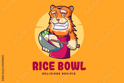 Tiger With Rice Bowl Mascot Logo