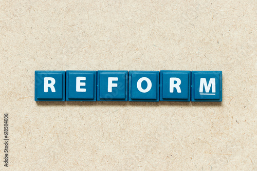Tile alphabet letter in word reform on wood background