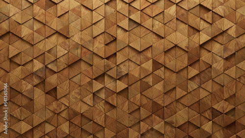 Timber Tiles arranged to create a Triangular wall. Natural, 3D Background formed from Wood blocks. 3D Render