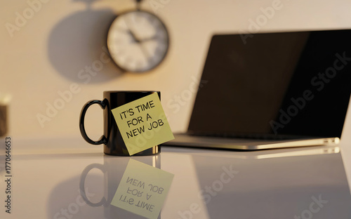 "Time for a New Job" Sticky Note on an Office Desk, a Career Change Concept