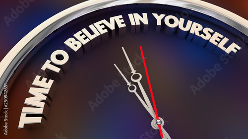 Time to Believe in Yourself Faith Confidence Clock Words 3d Illustration