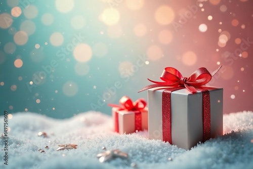 Tiny gifts, shimmering bows, suspended mid-air, whimsical, packaging, air