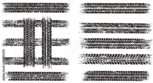 Tire Tracks: Gritty Black & White Vector Textures AI Generated