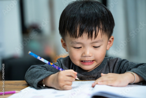 Toddler Practicing Writing with Pencil at Table