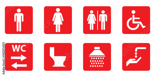 Toilet line icon set. WC sign. Men, women ,mother with baby and handicap symbol. Restroom for male, female, transgender, disabled. Vector graphics