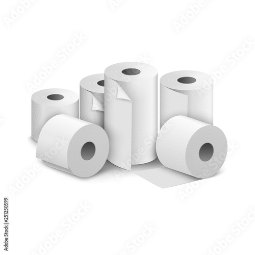 Toilet paper roll tissue. Toilet towel icon isolated realistic illustration. Kitchen wc whute tape paper