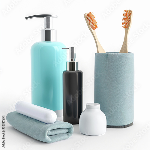 toiletries hygiene bathroom toothbrushes soap dispenser pump bottle towel toothpaste bathroom set bathroom essentials personal care