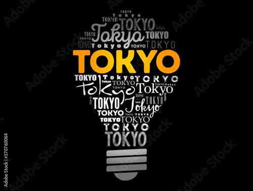 Tokyo light bulb word cloud, travel concept backgrpund