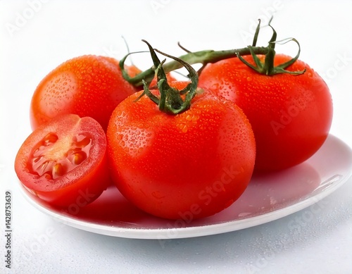 Tomato hd quality in white background, tomato slices on the plate, tomatoes in the basket