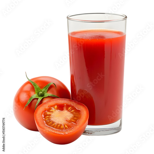 Tomato juice in glass with tomato isolated on transparent background