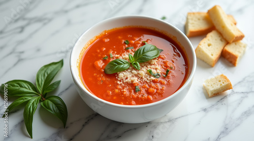 tomato soup with basil leaves
