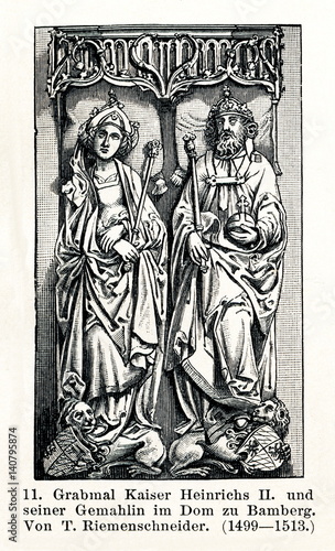 Tomb of Emperor Henry II and Empress Cunigunde in Bamberg Cathedral by Tilman Riemenschneider (from Meyers Lexikon, 1895, 7/832/833)