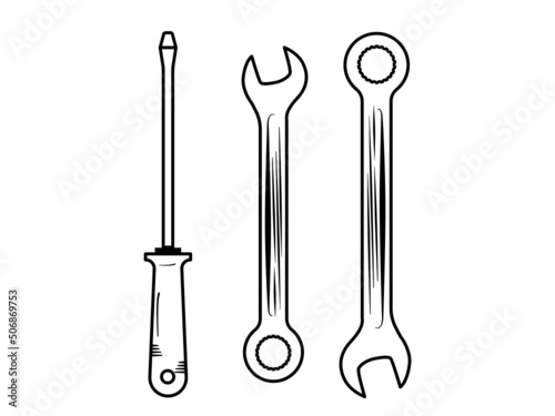 Tool set, wrench, screwdriver