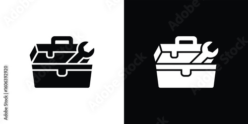 Toolbox Icon Open Case and Wrench Silhouette Isolated on White Transparent Background