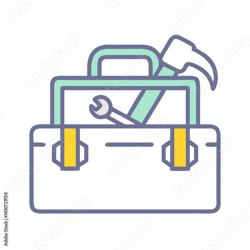 Toolbox with Hammer Icon Representing Construction Tools and Repair Equipment