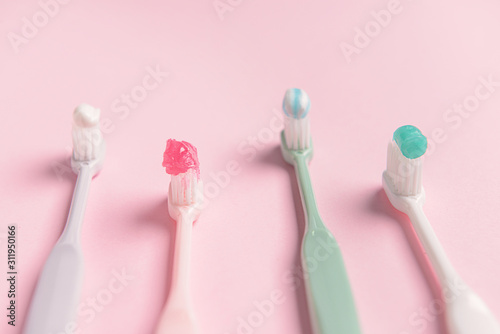 Tooth brushes with paste on color background