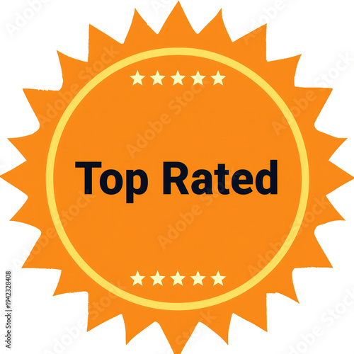 "Top Rated" Quality Award Seal Badge with Five Stars for Premium Product or Service Excellence