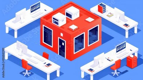 Top view of a funded startups workspace, illustrating the collaborative tech hub environment with feedback loop systems