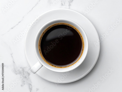 Top View of Coffee Cup on White Table – Minimalist Morning Concept