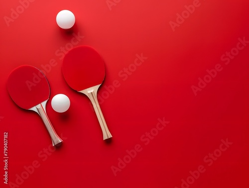 Top view of ping pong ball with paddles, copy space for text
