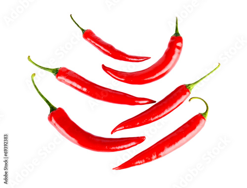 Top view of symetrical red peppers isolated white background